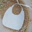 The bib is backed in soft cotton lawn and ties at the back with a double satin ribbon.